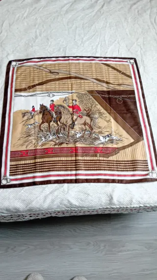 Pañuelo vintage de Italia estilo Hermes con estampado ecuestre de caballos. 100% poliester. Completamente nuevo. MÁS PAÑUELOS VINTAGE EN MI PERFIL #pañuelovintage #coleccionismo #pañuelocaballos #pañuelo80s #paluelo90s #ropavintage