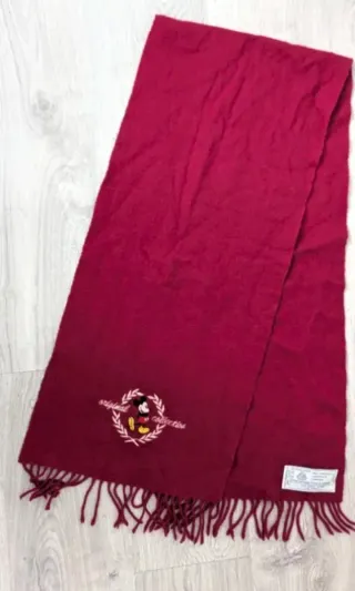 Bufanda con diseño de Mickey Mouse. - Detalle bordado. - Flecos en los extremos.