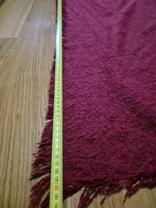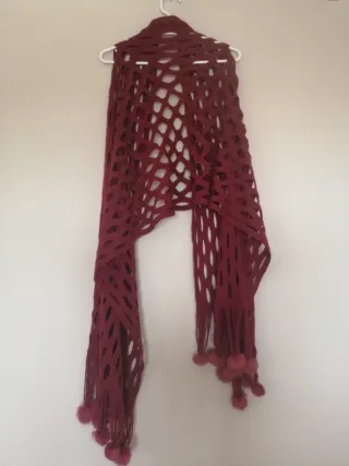 Hecho a mano con mucho mimo, en tonos granate y beige que combinan con todo. Diseño en pico, suave y calentito. ✨ Nuevo, sin estrenar 📏 Medidas: 140 x 110 x 110 cm Ideal para dar un toque especial y boho a cualquier look. Si quieres, puedo hacer otra versión más minimal, más bohemia o más premium 💫