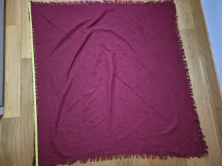 Bufanda de lana en tono rojo/granate, con un acabado deshilachado en los bordes. - nueva, sin estrenar todavía con las etiquetas