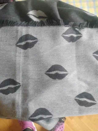 Fular con un diseño original de labios en contraste. - Estampado de labios. - Acabado con flecos. Ancho 67 Largo 193