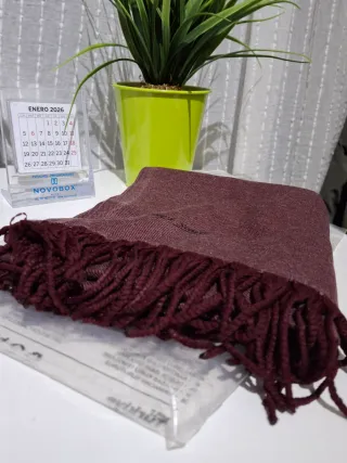 Regalo bufanda de color granate con un diseño elegante y moderno (entrega: barrio de Las Tablas) . Perfecta para complementar tu atuendo. - Detalle de flecos en uno de los extremos. - Textura suave al tacto.