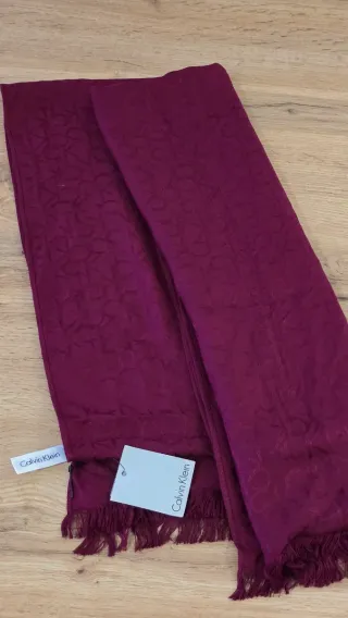 Bufanda Calvin Klein de color granate totalmente nueva. Está serigrafiada con las letras CK. Tdavía con la etiqueta. Perfecto para regalo.