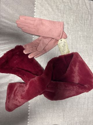 Conjunto de guantes y bufanda. - Guantes de tacto suave. - Bufanda de pelo sintético.