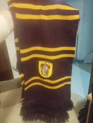 Bufanda de Gryffindor de Harry Potter, con el escudo de la casa. Bufanda de lana granate y naranja de griffindor de harry potter comprada en la tienda original en Londres. Incluye la etiqueta original. La envío rápido o la entrego en mano en Madrid en metro Buenos Aires/ atocha/ pacífico/ tribunal/ sol Precio original 39€ - Diseño a rayas rojas y doradas. - Escudo de Gryffindor bordado.