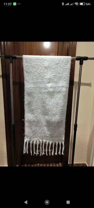 Una es de color crema ,sin usar mide 14 x 178 cm y la otra gris usada - Tejido suave y cálido. - Diseño con flecos en los extremos.