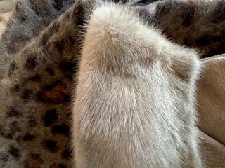 Cuello de pelo natural en tonos beige y gris, con un diseño vintage. - Medidas: 60x13 cm. - Buen estado de conservación.