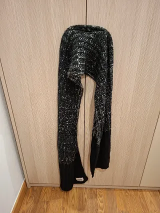 Bufanda de punto con un diseño moderno y cálido. - Tejido grueso y suave. - Combinación de colores negro y gris jaspeado. - Largo ideal para envolver cómodamente. Medidas 27 cm ancho y 200 cm largo
