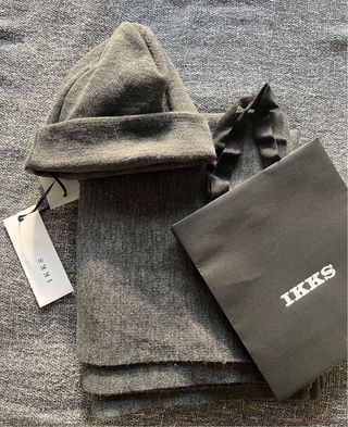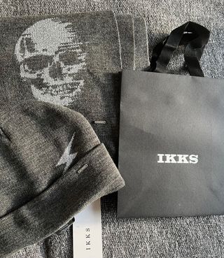 Conjunto de gorro y bufanda de la marca IKKS con diseño de calavera y el rayo icónicos de la firma. - Gorro de punto gris con detalle de rayo. - Bufanda de punto gris con estampado de calavera. - Incluye bolsa de regalo IKKS!!! NUEVO A ESTRENAR SIN USO CON ETIQUETA PUESTA Ideal regalo o regalar Unisex tanto chica como chico hombre o mujer Perfil TOP ver mis valoraciones 5* Envio protegido rapido y seguro!
