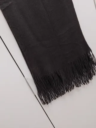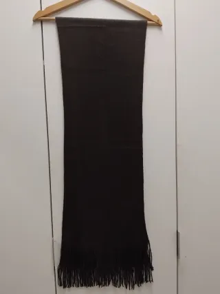 Bufanda de punto en color marrón chocolate. Es un accesorio versátil que puede ser usado por hombres y mujeres. - Tejido suave y cálido. - Diseño con flecos en los extremos.