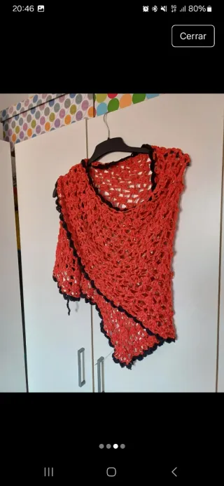 Chal de punto hecho a mano, ideal para complementar tu atuendo. - Sin estrenar. - Diseño unico - Acabado con borde en contraste. - PARA PONERLO EN LOS HOMBROS DE BUFANDA O EN LAS CADERAS.