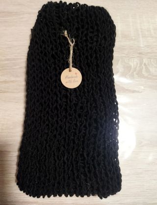 Preciosa bufanda tejida a mano, perfecta para abrigarte con estilo. Es suave y cálida. No pica. - Diseño de cuello infinito. - Colores verde y negro.