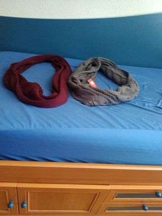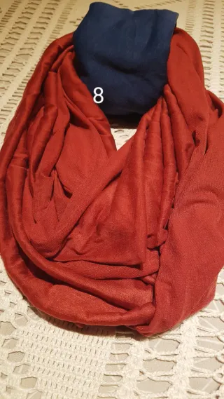 Conjunto de dos bufandas infinitas, perfectas para complementar tu estilo. Medidas : 85 cm ancho y 180 cm largo de circunferencia porque es tejido tubular. - Una bufanda de color azul cobalto. - Una bufanda de color teja. REGALO : semanario arcoiris elástico. Elige el número del conjunto elegido. El n°7 es: tostado y entre fucsia y lila El n°1 es tostado y granate Hago la aclaración porque la cámara no captó fielmente sus colores. Encantada de aclararte cualquier duda. Precio no negociable