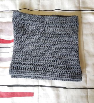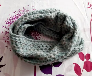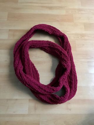 Bufanda tipo snood de punto grueso. - Tejido acanalado. - Diseño circular.
