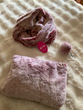Conjunto de bolso y cuello de suave pelo. - Bolso de pelo con cremallera. - Cuello de pelo tipo bufanda infinita. - Adorno de pompón con llavero. - El regalo perfecto. - el bolso lleva cadena para poder colgarse o llevarse de mano