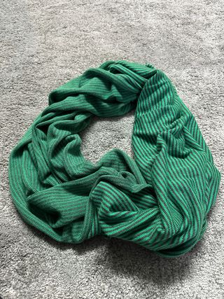 Bufanda infinita de punto. Cuidada, con muy poco uso y en buen estado. Medidas: 75 cm de largo 32 cm de ancho - De punto en color verde azulado. - Tejido de punto grueso. - Se puede usar como bufanda o como cuello. - Estilo circular o infinito. Si te interesan varias cosas, dímelo y te hago un lote para ahorrar en el envío. Envíos en 1-2 días laborables. NO reservo.