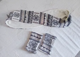 Bufanda de punto con forro interior suave. - Diseño de punto calado en blanco. - Forro interior polar - Estilo circular o infinito. - Calientita