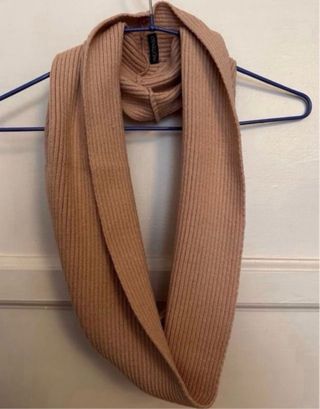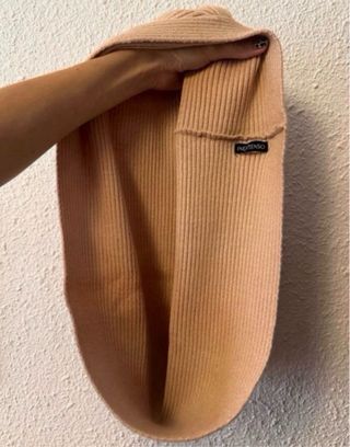 Preciosa bufanda de punto color beige, perfecta para abrigarte con estilo. - Diseño de cuello infinito. - Tejido suave y cálido. - Ideal para el otoño e invierno.