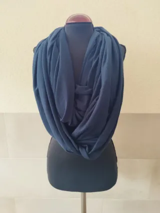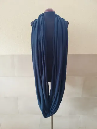 Bufanda infinita extragrande de color azul marino. Puedes usar como chal o capucha y bufanda. No es muy gruesa. Tamaño : Ancho 87 cm Largo doblada por la mitad 113 cm Está en excelente estado.