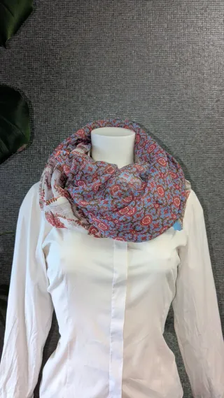 Bufanda tipo snood con un discreto estampado. - Diseño versátil. - Tejido suave y ligero.