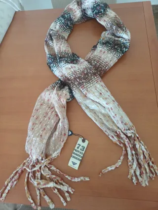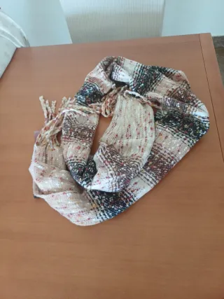 Bufanda infinita de punto Dayaday. Cuidada, con muy poco uso y en buen estado. Medidas: 81 cm de largo 28 cm de ancho - De punto en color beige, verde y marrón. - Tejido de punto grueso. - Se puede usar como bufanda o como cuello. - Estilo circular o infinito. Envíos en 1-2 días laborables. NO reservo.