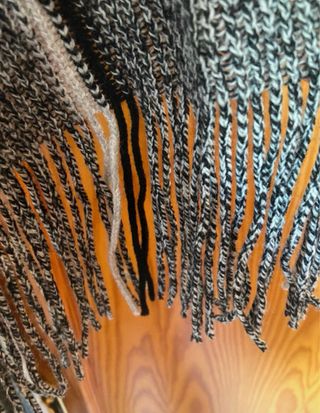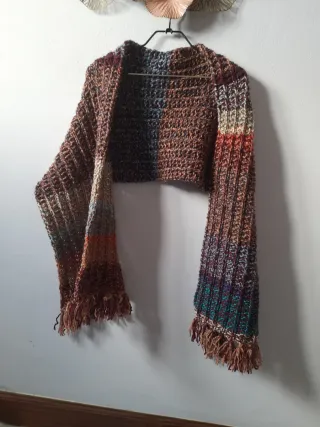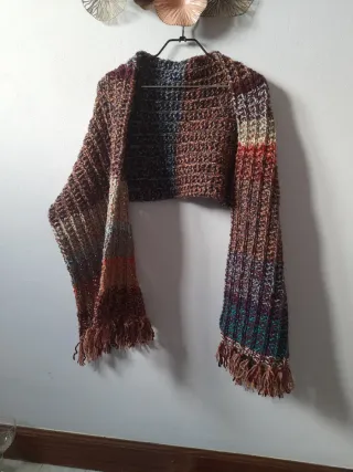 Bufanda tejida a mano con un bonito diseño y flecos en los extremos. - Tejido de lana suave. - Diseño con textura. - Flecos decorativos.