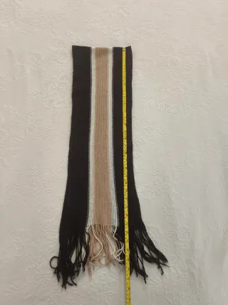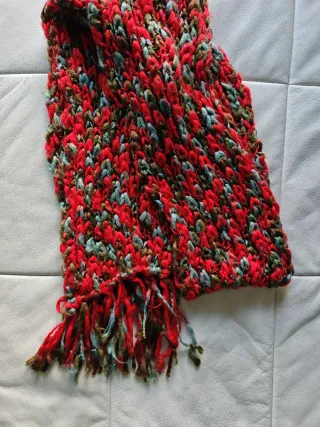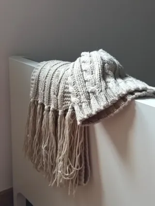 Bufanda de lana tejida con flecos unisex prácticamente nueva. - Material: Lana. - Diseño: Tejido grueso. - Acabado: Flecos en los extremos.