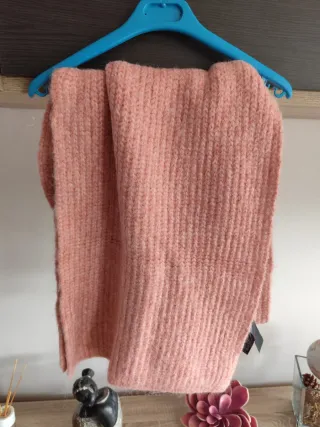 Bufanda de punto suave y calentita. - Tejido de lana. - Diseño de punto grueso. - Color rosa pastel.