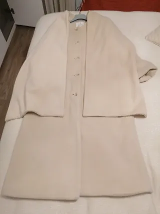 Abrigo de lana para mujer en color beige con bufanda incorporada. Un clásico elegante y versátil. - Diseño de corte recto. - Cierre de botones. - Cuello redondo.