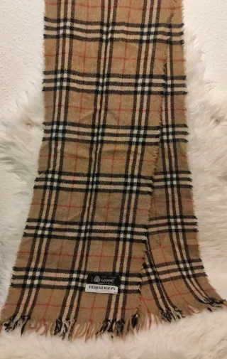 Bufanda de lana con el clásico tartán de Burberry. - Hecha 100% de lana. - Diseño a cuadros en rojo, negro y blanco. - Flecos en los extremos. Perfecto estado, envío rápido, 100% auténtico.