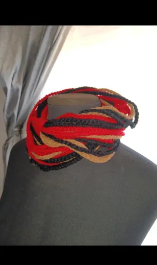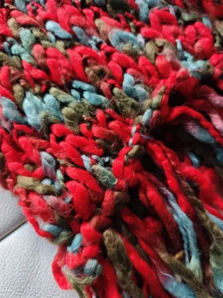 Bufanda de lana tejida a mano con un diseño de múltiples hebras. - Hecha con hilos de lana. - Combinación de colores llamativa.