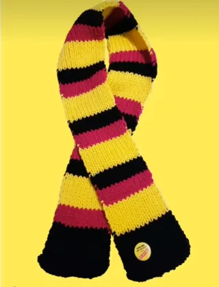 Bufanda tejida a mano por mí, con los colores del disco "Never Mind The Bollocks, Here's The Sex Pistols". Incluye una chapa de los Sex Pistols. - Diseño a rayas: negro, fucsia y amarillo. - Material: tejido artesanal. Lana - Detalle: chapa de los Sex Pistols.