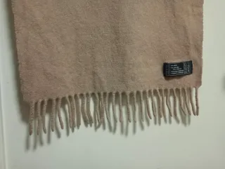 Bufanda de lana suave con flecos. Tiene poco uso pero, aunque ha perdido algo de color (y de ahí el precio) está muy bien conservada. Es corta (102cm)