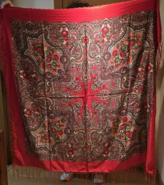Mantón grande con un diseño tradicional y estampado floral. - 140 x 140 cm más fleco de lana