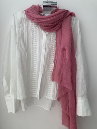 Fular rosa muy bonito y ponible, es super suave y no tiene ningún uso. El color es más claro de lo parece en las fotos. Queda muy bien con los conjuntos, lo recomiendo mucho como complemento en la época otoño invierno Material: 70% viscosa y 30% lana