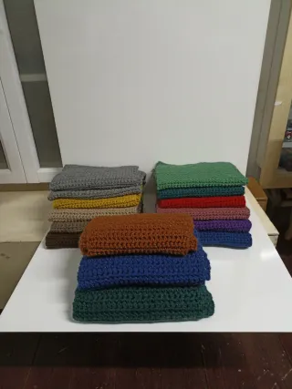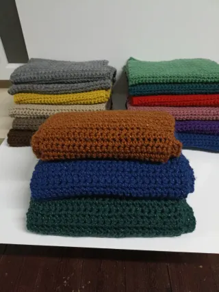 Cuello de lana tejido a mano en tonos amarillo, verde, azul, etc. Sin estrenar.