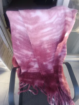 Bufanda extrasuave con un degradado de color entre rosa y burdeos. Tiene un tacto muy agradable y es perfecta para abrigarse. - Diseño con flecos en uno de los extremos. - Material muy suave al tacto. -70% viscosa 30% lana