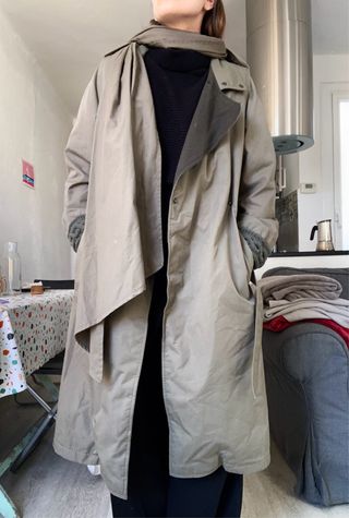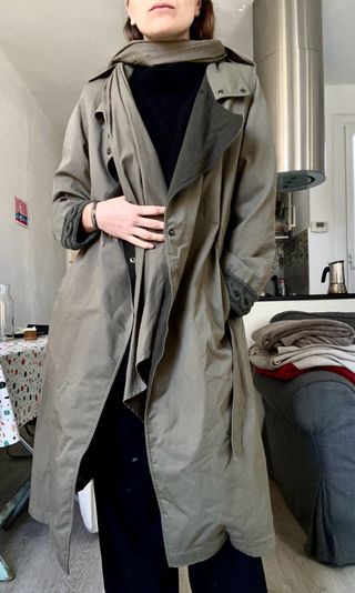 Gabardina elegante con bufanda integrada. - puñales de punto. - forro interior de lana. - Bolsillos frontales. - Cierre de botones.