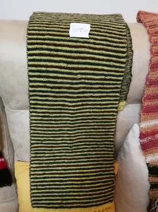 Bufanda de lana tejida a mano con un diseño de rayas. - Hecha con lana de calidad. - Diseño a rayas en varios colores.