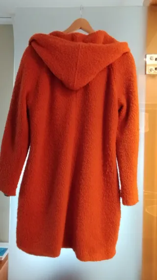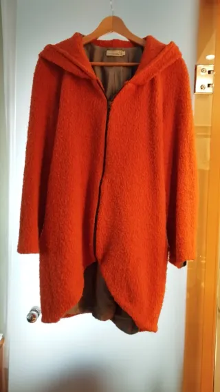 Abrigo de lana naranja con capucha, regalo bufanda