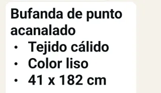 Bufanda de tejido suave y cálido. - Diseño liso. - Flecos en los extremos. - Material agradable al tacto.