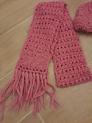 Conjunto Bufanda y Gorro de Lana Rosa