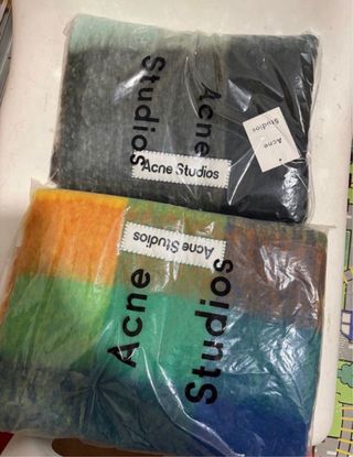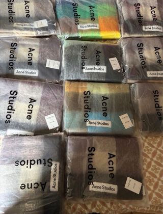 Vendo lote completo de 10 unidades de bufandas Acne Studios 100% originales. 290€ valen nuevas en tienda ✔️ Nuevas, sin usar y precintadas en su bolsa ✔️ Varios colores y modelos ✔️ Calidad mohair / lana ✔️ Entrega en mano en Madrid 📦 PRECIO LOTE COMPLETO: 1.500€ 💨 Venta urgente, primera persona que venga se las lleva Ideal para revendedores. Respondo de inmediato 662330955