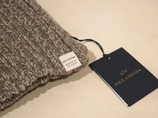 PAUL & SHARK - Bufanda de punto, confeccionada en Italia en mezcla de lana y cashmere en tonos beige/marrones. PVP: 389 € Modelo: 15317066C Medidas: 30 x 200 cm. Estado: Sin usar, con etiquetas.