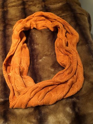 Cuello de lana con diseño de trenzas. - Tejido suave y cálido. - Color naranja vibrante. - Textura de punto grueso.