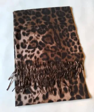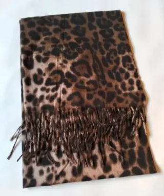 Pashmina suave con estampado animal en tonos marrones. Perfecta para añadir un toque de estilo. Suave y cálida . 1,80*70cm 20%lana 80% viscosa - Material: Lana y viscosa. - Diseño: Estampado animal. - Color: Marrón y negro. - Acabado: Flecos en los extremos. #bufanda#pashmina