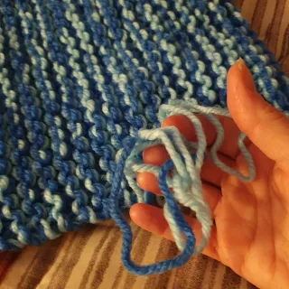Cuello tipo buff tejido a mano con lana. Medidas aproximadamente 21× 30 se estira al.ponerlo una vuelta.Unisex - Diseño degradado en tonos azules y blanco. - Textura suave y cálida.