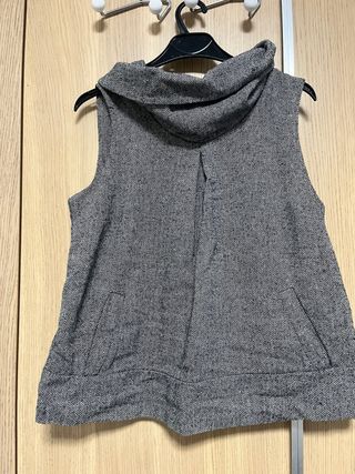 Camisa sin mangas con un diseño moderno y elegante. - Tejido con patrón de espiga. - Cuello alto tipo bufanda. - Bolsillos delanteros. - Corte holgado.