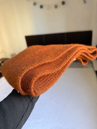 Bufanda color gris, nueva. Gorro verde y otro marrón nuevos con etiquetas. Guantes a juego con el gorro marrón, poco uso.