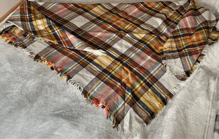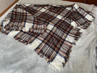 Esta como nueva - Estampado de cuadros en tonos marrón y negro. - Detalle de flecos en los extremos.